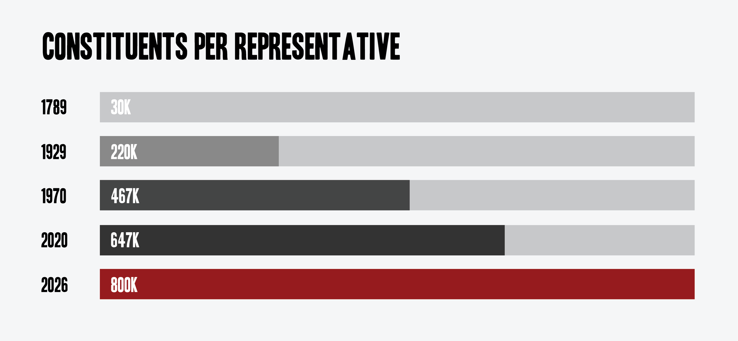 The House of Representatives has been capped at 435 seats since 1929, while the population tripled. One representative now speaks for nearly 800,000 Americans. It’s time for a change.